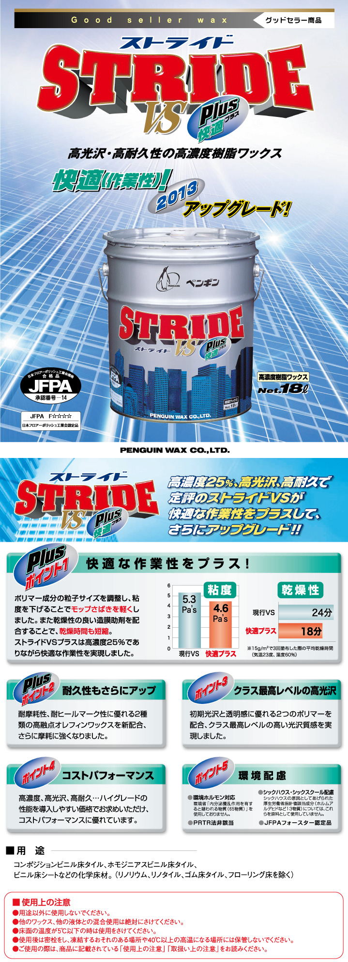 | 18L | 1,200㎡~1,800㎡(1回塗り)/18L | 8.2(25℃) | 約4.6 (mP・s、25℃) | 約25 (wt%、105℃/4時間) | 水 アクリル系樹脂エマルション 高融点ポリエチレンワックスエマルション 可塑剤 アルカリ可溶性樹脂 レベリング剤 防腐剤 消泡剤 |