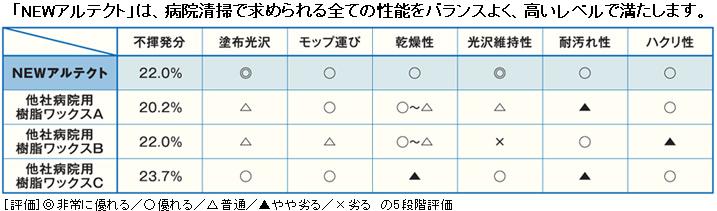 | 成分 | 水 金属架橋型アクリル樹脂エマルジョン 高融点ワックスエマルジョン 非有機リン系可塑剤 エタノール レベリング剤 界面活性剤 抗菌剤 消泡剤 |