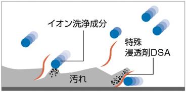 特殊浸透剤DSAとイオン洗浄成分のダブル作用により、