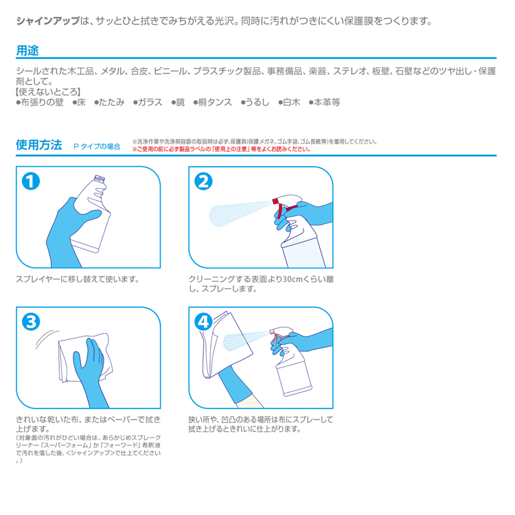 スプレーして拭き取るだけで、事務器具・備品のツヤを出し保護します。