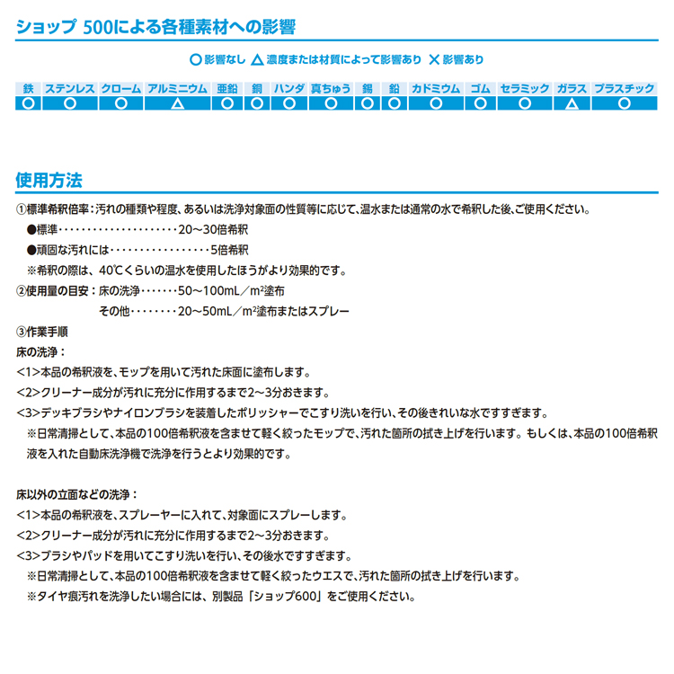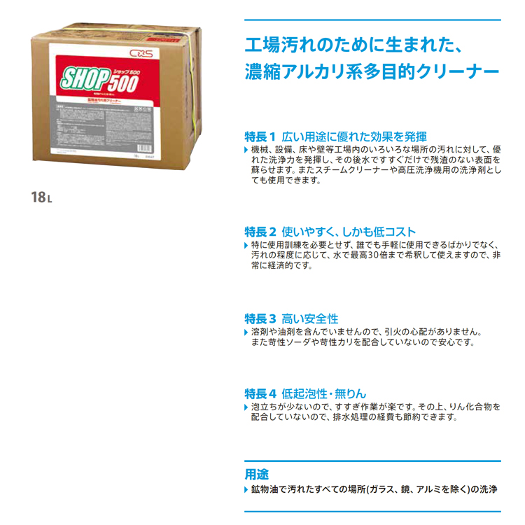 シーバイエス(ディバーシー) 洗剤 SHOP(ショップ)500 18L