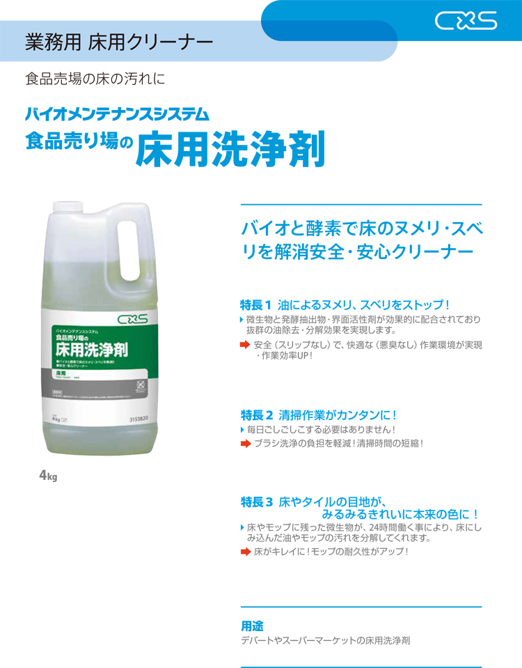 シーバイエス(ディバーシー) 洗剤 食品売リ場の床用洗浄剤 4L