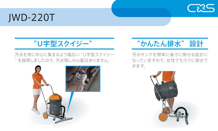 U字型スクイジー採用なので一滴も汚水も残しません。作業時間を大幅に削減できます。