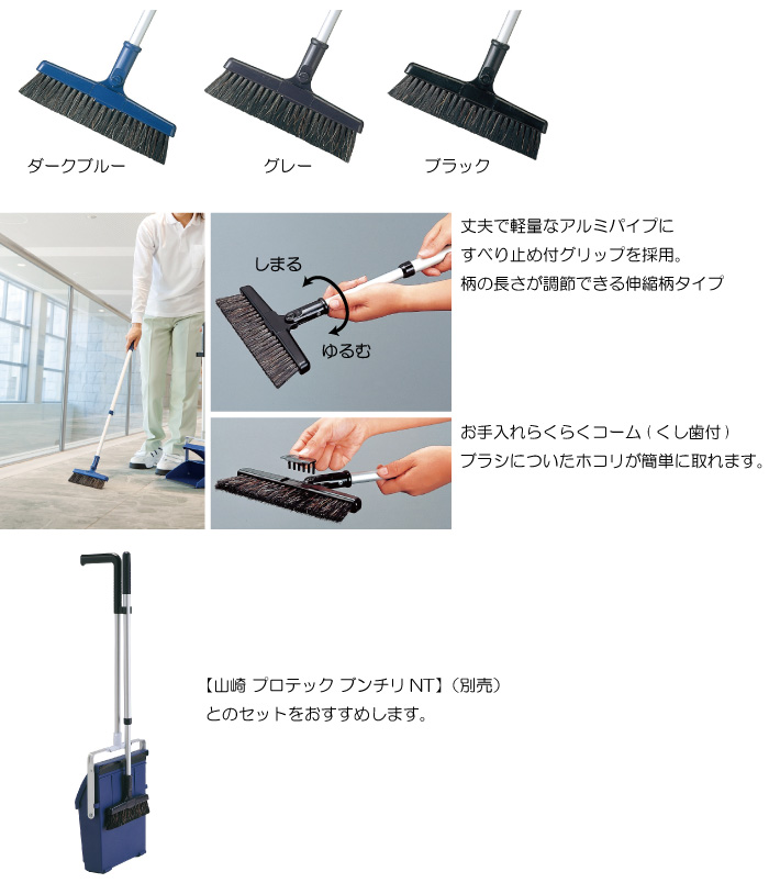 | 幅約230 全長約660~1025(mm) | 約260(g) | 約40(mm) | ハンドル:アルミパイプ、甲・コーム:PP、 毛:PP、PET(再生PET100%)、馬毛、除電材 |