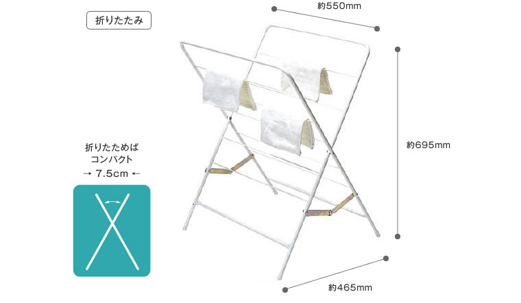 折りたたみ式もモップハンガーです。折りたためば、7.5cmと大変コンパクト。
