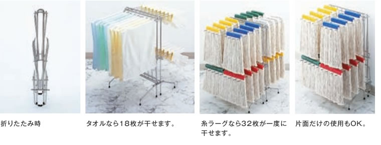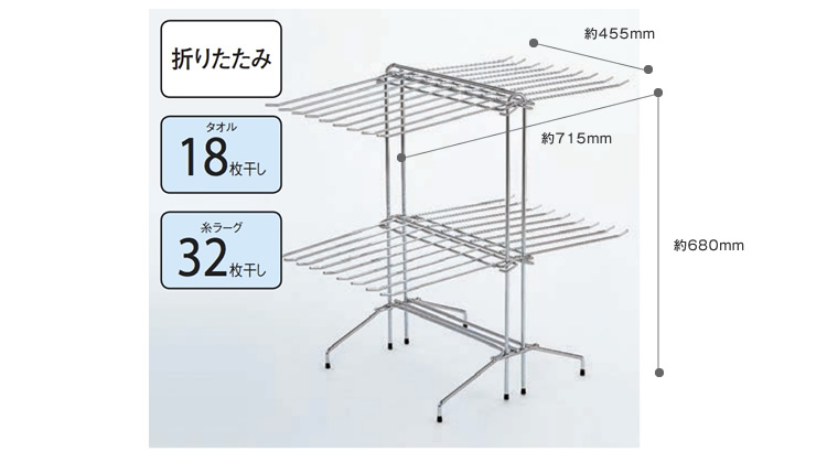 タオルなら18枚が干せます。糸ラーグなら32枚が一度に干せます。