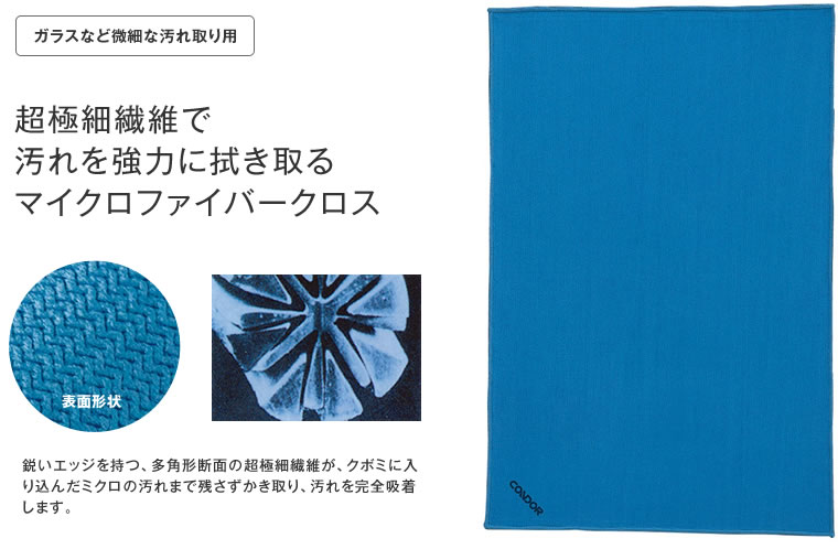 超極細繊維で汚れを強力に拭きとります。ガラスなどの微細な汚れ取り用です。