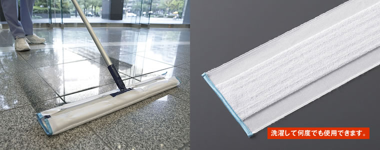 ポリエステルのループパイルとマイクロファイバーを交互に配して、水拭き抵抗を減らし、作業もスムーズに行えます。
