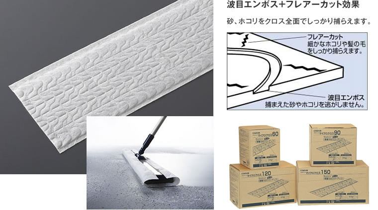 フレアーカット+波目エンボス効果。フレアーカットで細かなホコリや髪の毛をしっかり捕らえ、波目エンボスで、捕まえた砂やホコリを逃しません。