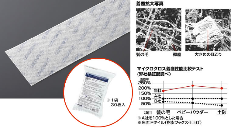 3層構造の特殊繊維で比較的大きなゴミやホコリなども効果的に取れるワイド着塵性能。