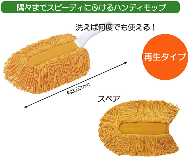 綿タイプの隅々までスピーディに拭けるハンディモップ