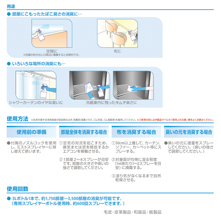 スプレイヤーで噴霧したり、ウエスにぬらして対象面を拭いて下さい。
