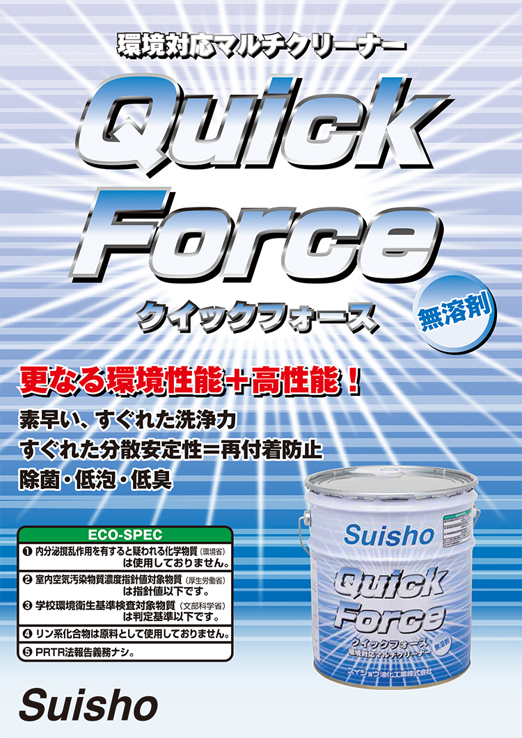 | 18L | 20~100倍希釈/18L | 約13.0(25℃) | 約2.0 (mP・s、25℃) | 約11.0 (wt%、105℃/4時間) | 水 ノニオン系界面活性剤 ケイ酸塩 可溶化剤 分散剤 キレート剤 染料 除菌剤 |