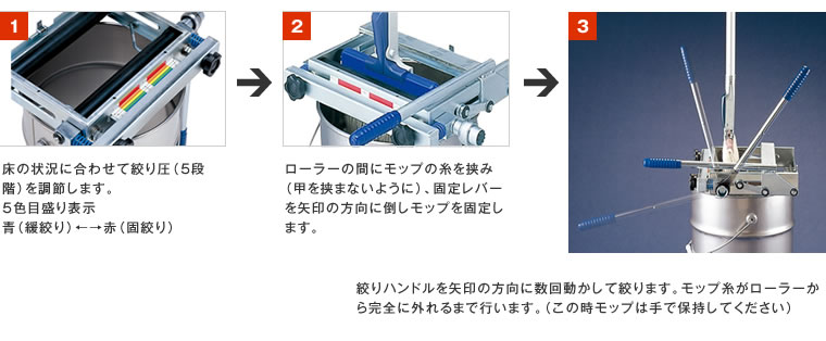 5段階絞り圧調節ノブで、天候や床の状態に応じて絞り圧を調節できます。