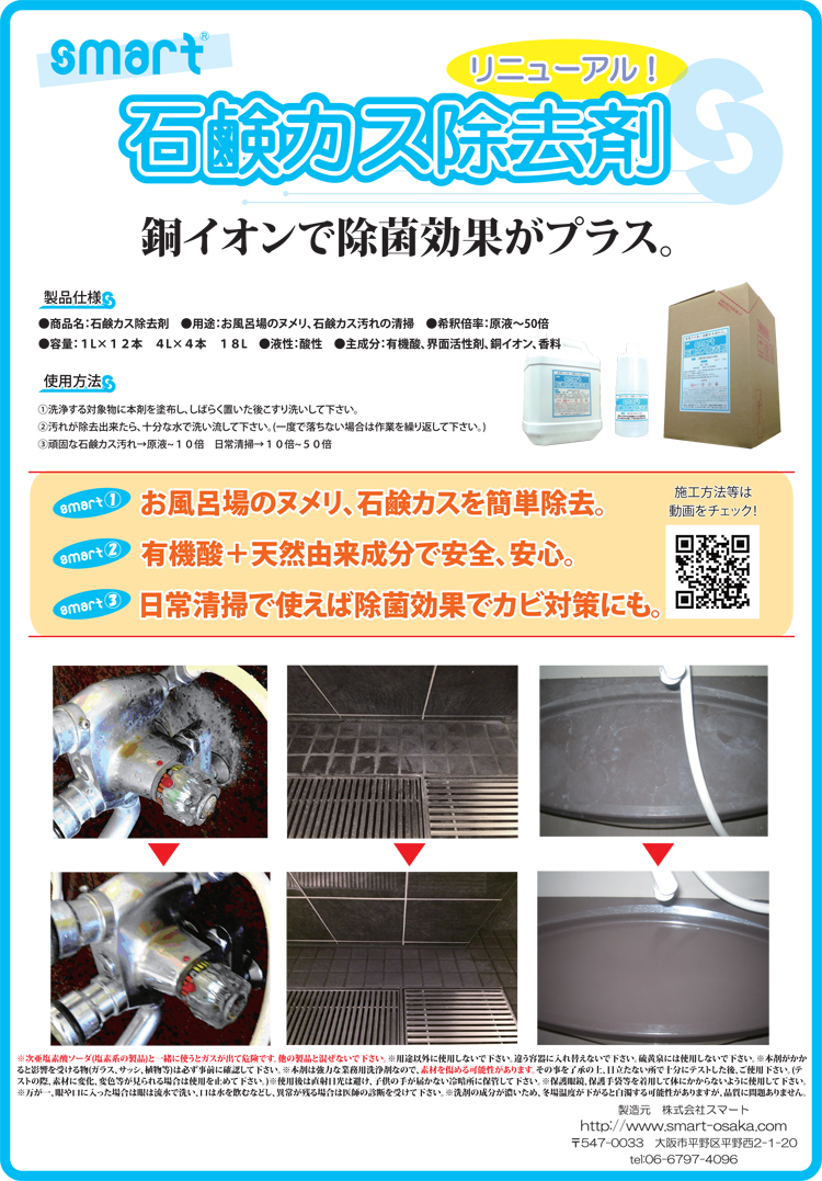 汚れが良くとれる酸性タイプ。日常清掃にも。お風呂などの桶や椅子などにこびりつく取れにくい石鹸カスを除去できます。