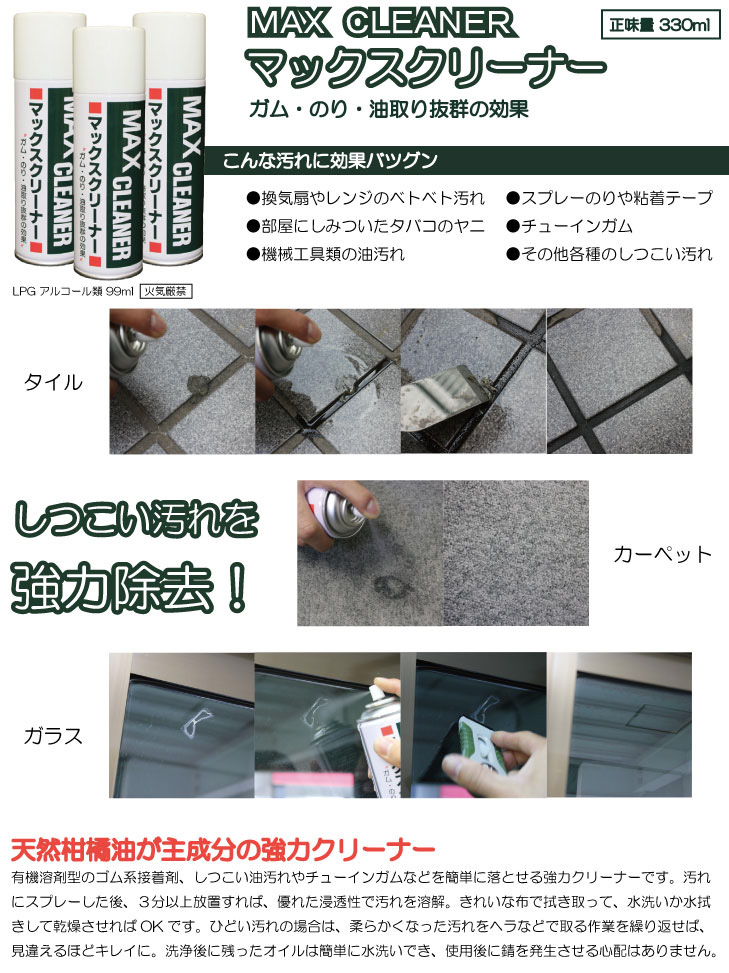 必ず事前に試し拭きなどによりご確認の上ご使用下さい。(プラスチック類には、使用しないで下さい)