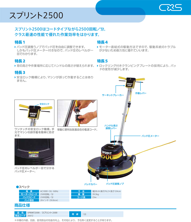 シーバイエス(ディバーシー) バーニッシャー・バフィングマシン SPRINT-2500(コードタイプ)