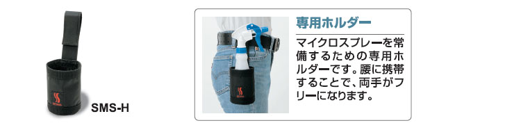 マイクロスプレー専用ホルダーです。腰に携帯でき、プロフェッショナルさが引き立つ一品です。