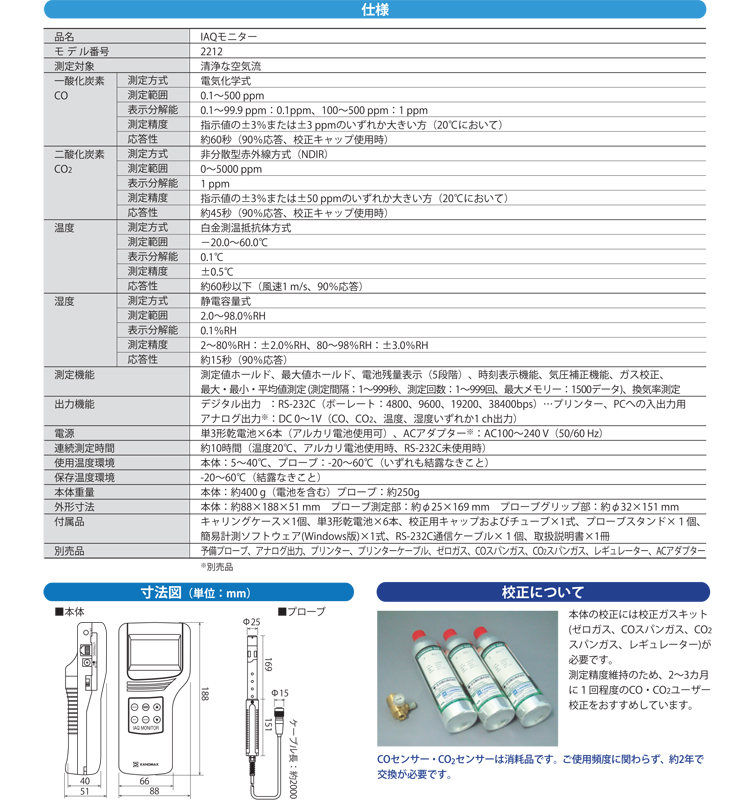 日本カノマックス 空気環境測定器 IAQモニター2212