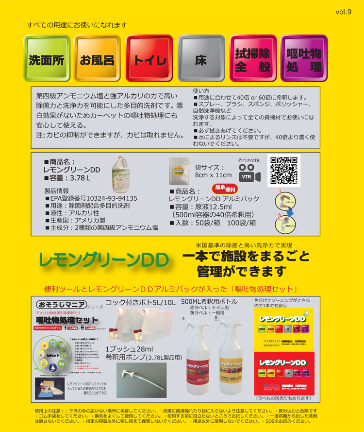 施設の清掃、除菌、消臭を目的とするEPA登録商品です。
