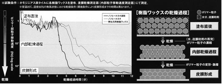 特殊揮発促進成分の働きにより、従来の樹脂ワックスに比べ乾燥時間が大幅に短縮