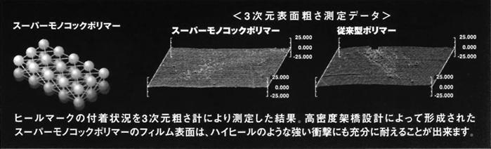 樹脂フィルムの欠損を防止する事で耐ヒールマーク性能を飛躍的にアップさせました。