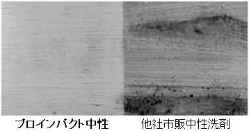 基材に付着したそれぞれの湯垢汚れを、各サンプル(原液)で3分間湿布後洗浄したもの