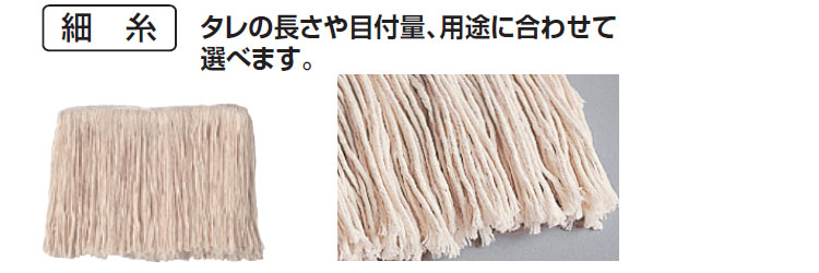用途に合わせて、タレの長さや目付量で選べるモップ糸。