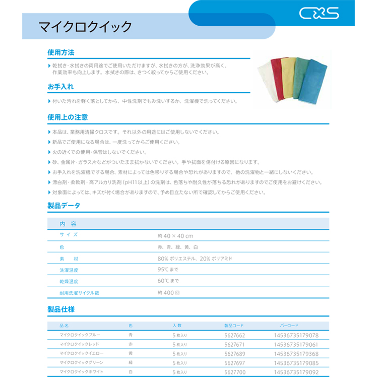 シーバイエス(ディバーシー) マイクロファイバークロス マイクロクイック