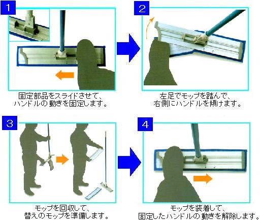 ●ハンドルを傾けてモップを外す場合、近くに人がいないか確認してから作業を行って下さい。