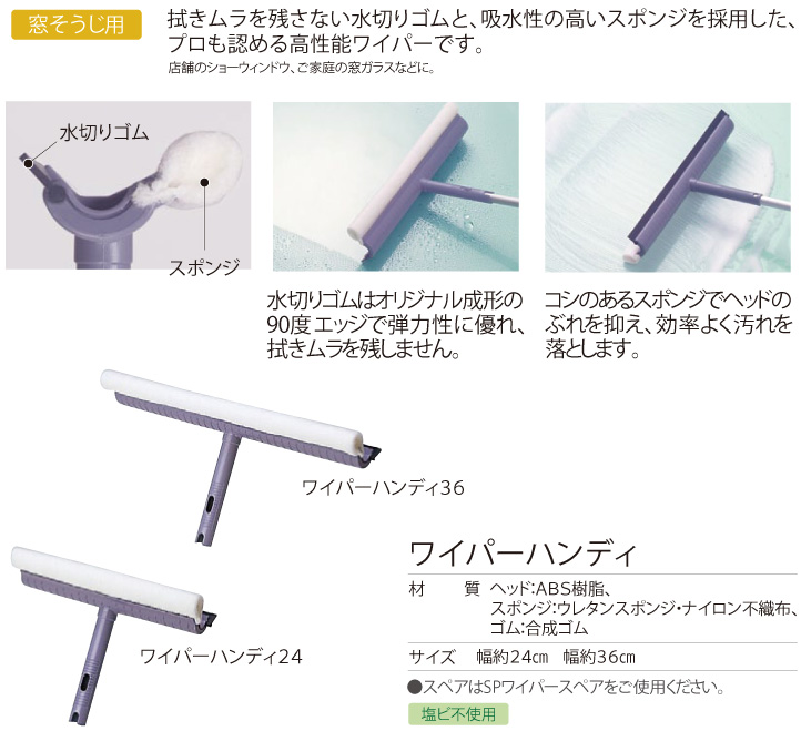 ゴムはオリジナル成形の90度エッジで弾力に優れ、拭きムラを残しません。