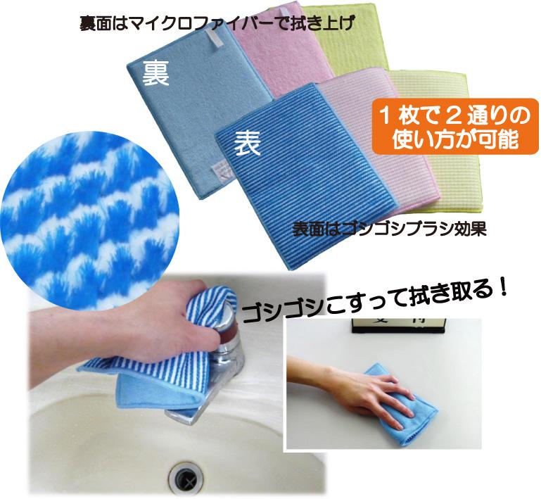表面はブラシ効果 裏面はマイクロファイバーの布クロス