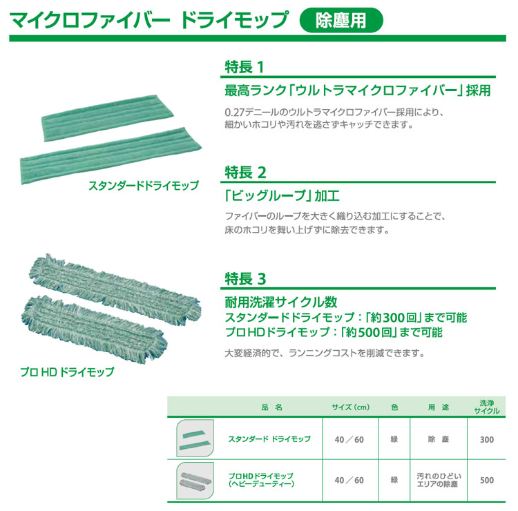 ウルトラマイクロファイバーを採用した除塵用ドライモップ