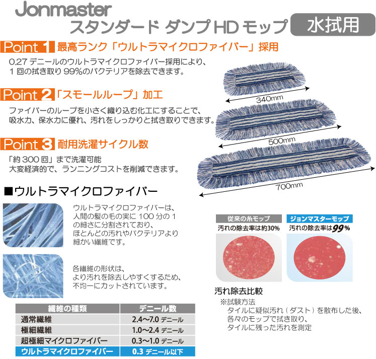 | ダンプHDモップ40 | 110mm×500mm | 145g | ポリエステル74% コットン26% |