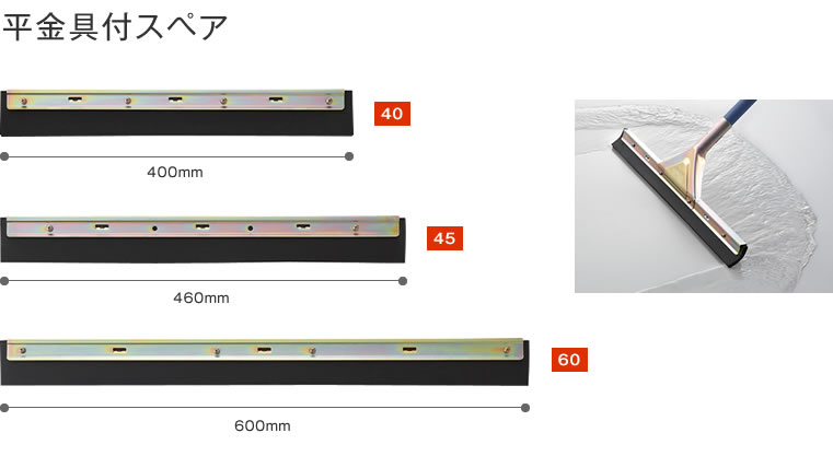 コンドルドライワイパーの平金具付スペアです。40、45、60のサイズがあります。