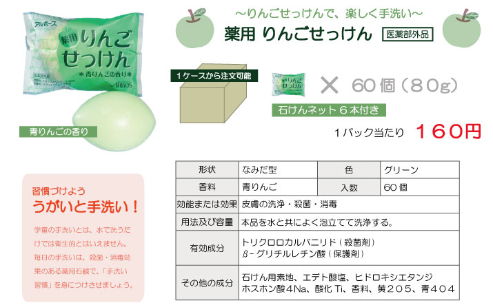 アルボース 手洗い石鹸 薬用りんごせっけん 80g×60個