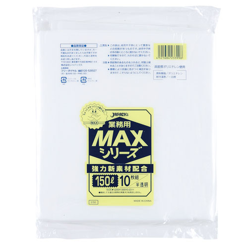 ジャパックス 【150L】ゴミ袋 業務用MAX S-150 0.030mm 半透明 10枚×20冊入