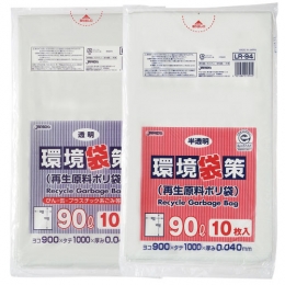 | 環境袋策 90L | 透明 | LR-93 | W900×H1000(mm) | 再生LL | 0.04(mm) | 10枚×30冊=300枚 |