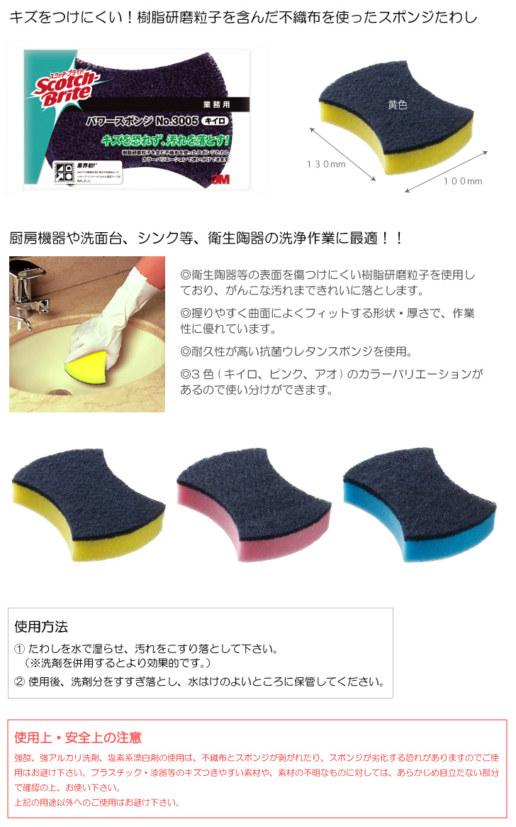 キズつけにくい!樹脂研摩粒子を含んだ不織布を使ったスポンジたわしです。