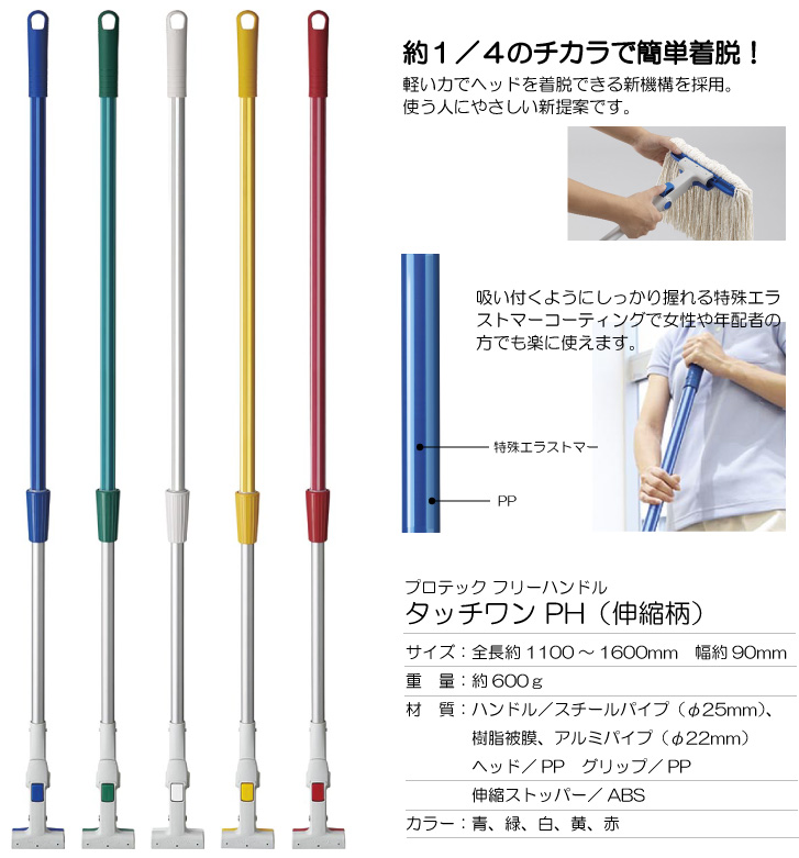 約1/4の力で簡単に着脱!新機構のボタン式だから軽い力でヘッドを交換できます。