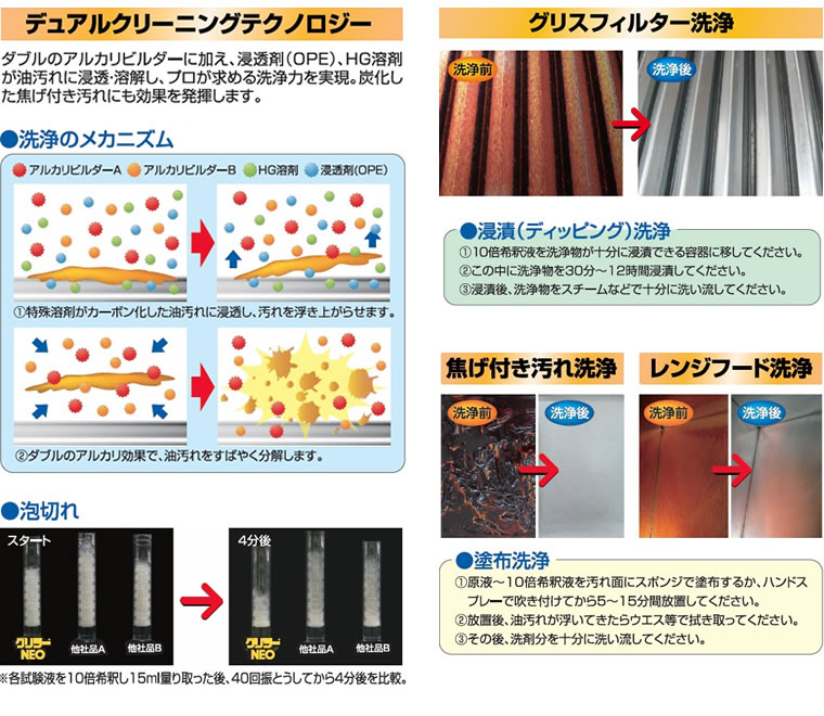 - ・カーボン化したしつこい汚れを素早く分解するので、時間のないディッピングでもキレイになる。
