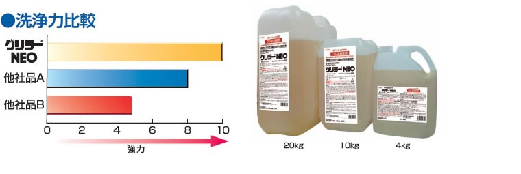 | グリラーNEO | 4㎏・10㎏・20㎏ | 液体・アルカリ性 | 原液〜10倍 |