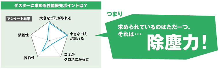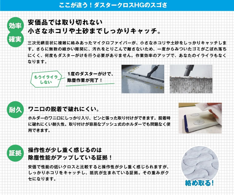 ●これまで安価品をなんの疑問もなく使っていましたが、この商品によって初めて「細かいホコリが取れる!」実感を得ました。他のスタッフも同じ感想でした。