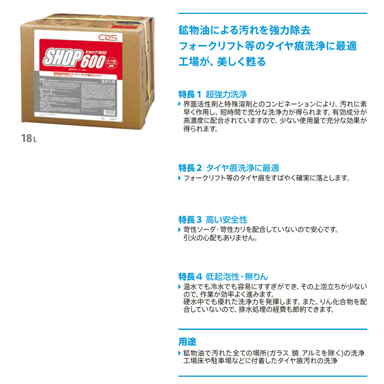 シーバイエス(ディバーシー) 洗剤 SHOP(ショップ)600 18L