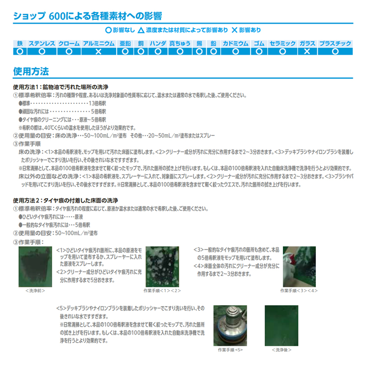 J-ショップ600は、界面活性剤と特殊溶剤により、工場内の広範囲な汚れを強力に落とします。