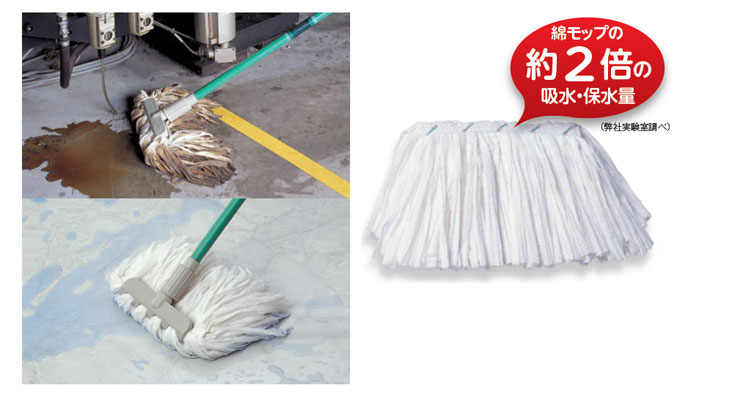 不織布を再利用した抜群の吸油・吸水性能を誇る、使い切りタイプのモップ糸です。
