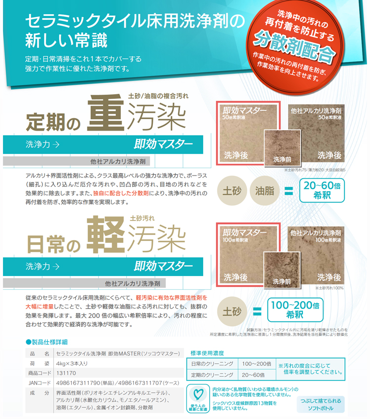 セラミックタイル洗浄剤 即効MASTER(ソッコウマスター)4kg セラミックタイル洗浄剤 即効MASTER(ソッコウマスター)4kg