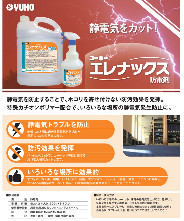 特殊カチオンポリマー配合で、いろいろな場所の静電気発生防止に