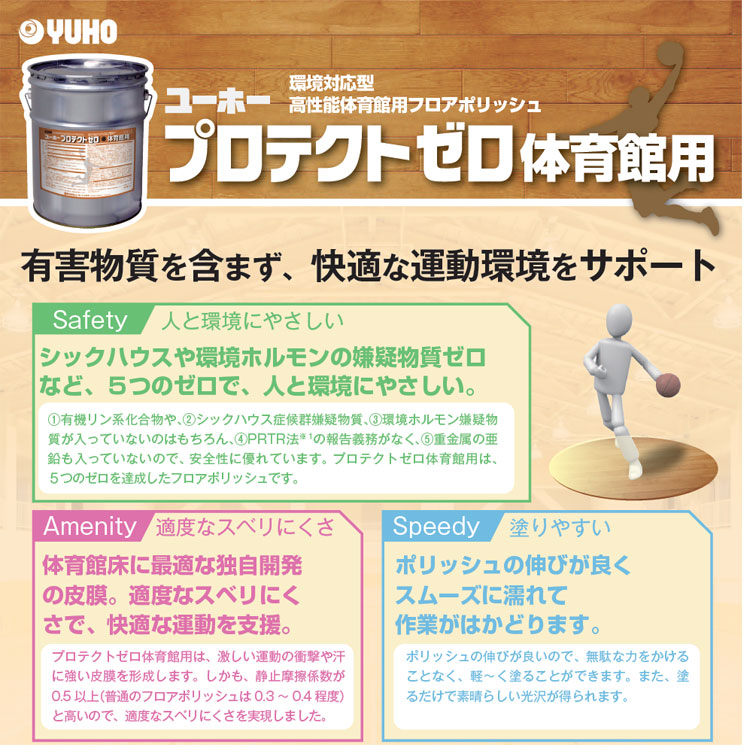| 用途 | 体育館の床等のウレタン樹脂などでコーティングされた木材等の仕上剤 |