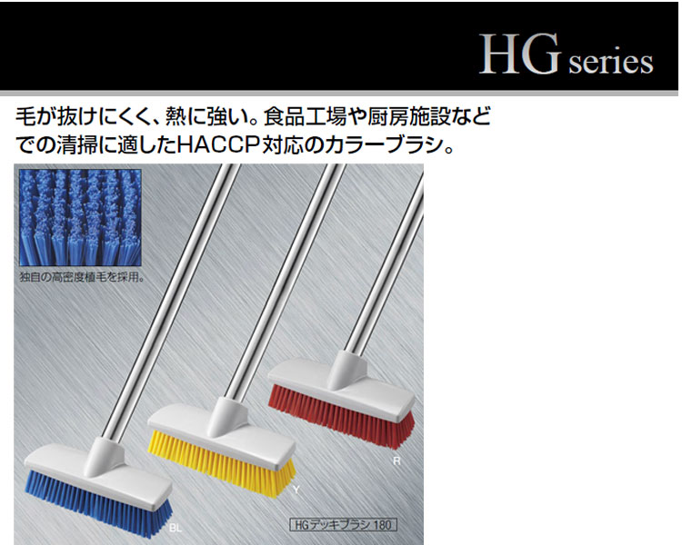 高温滅菌・薬品消毒に対応した衛生管理ツール、HGシリーズのデッキブラシです。